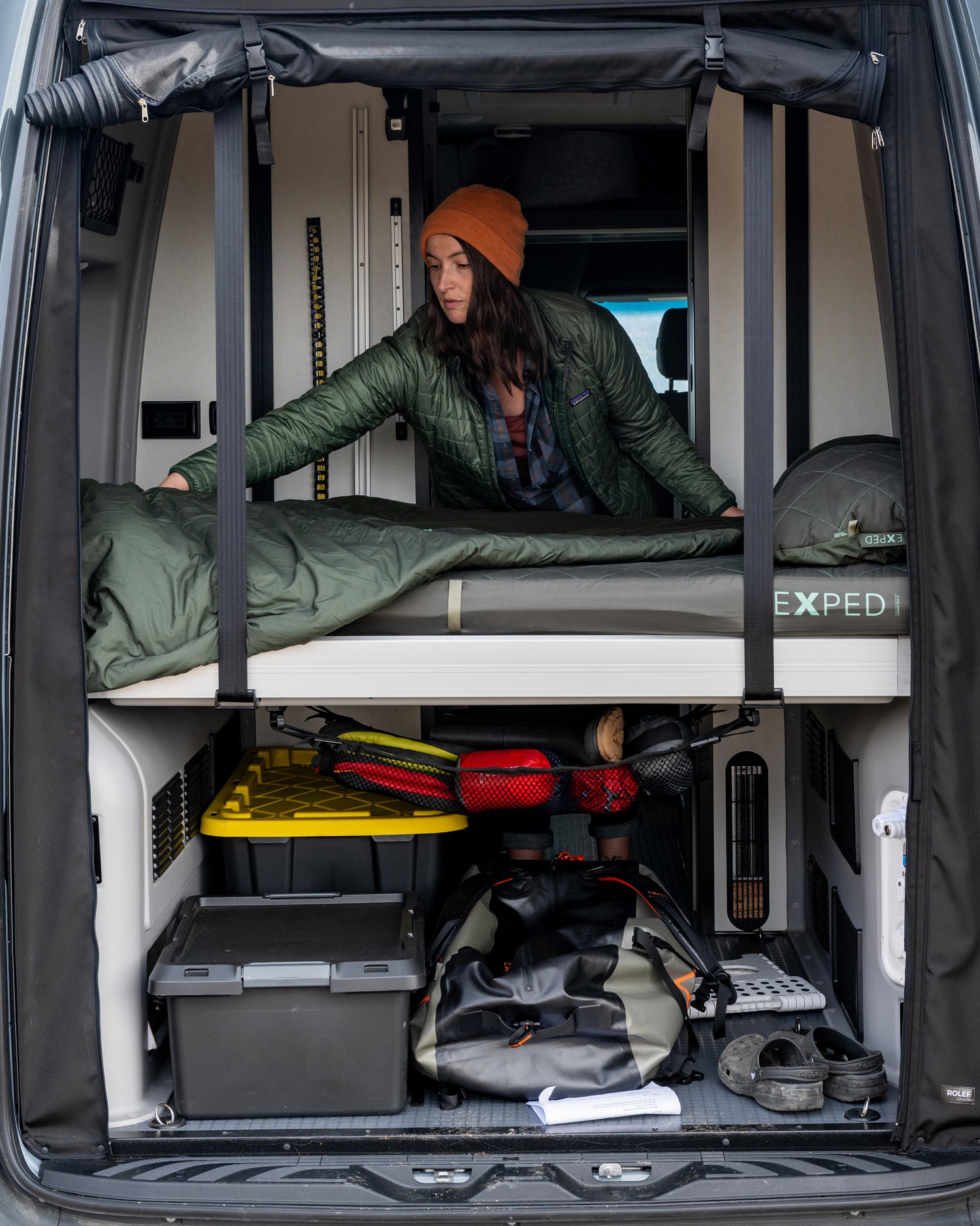 LuxeMat is our most luxurious sleeping mat, designed for those who want the ultimate sleeping experience. 4" of foam, horizontal air channels, and a cotton topper insulated with wool provide comfort, perfect for side and stomach sleepers.