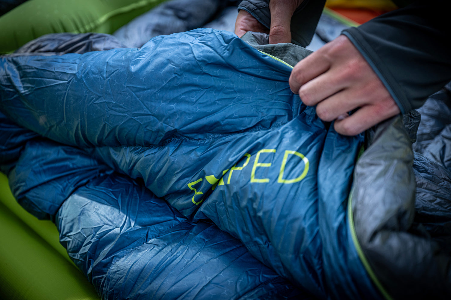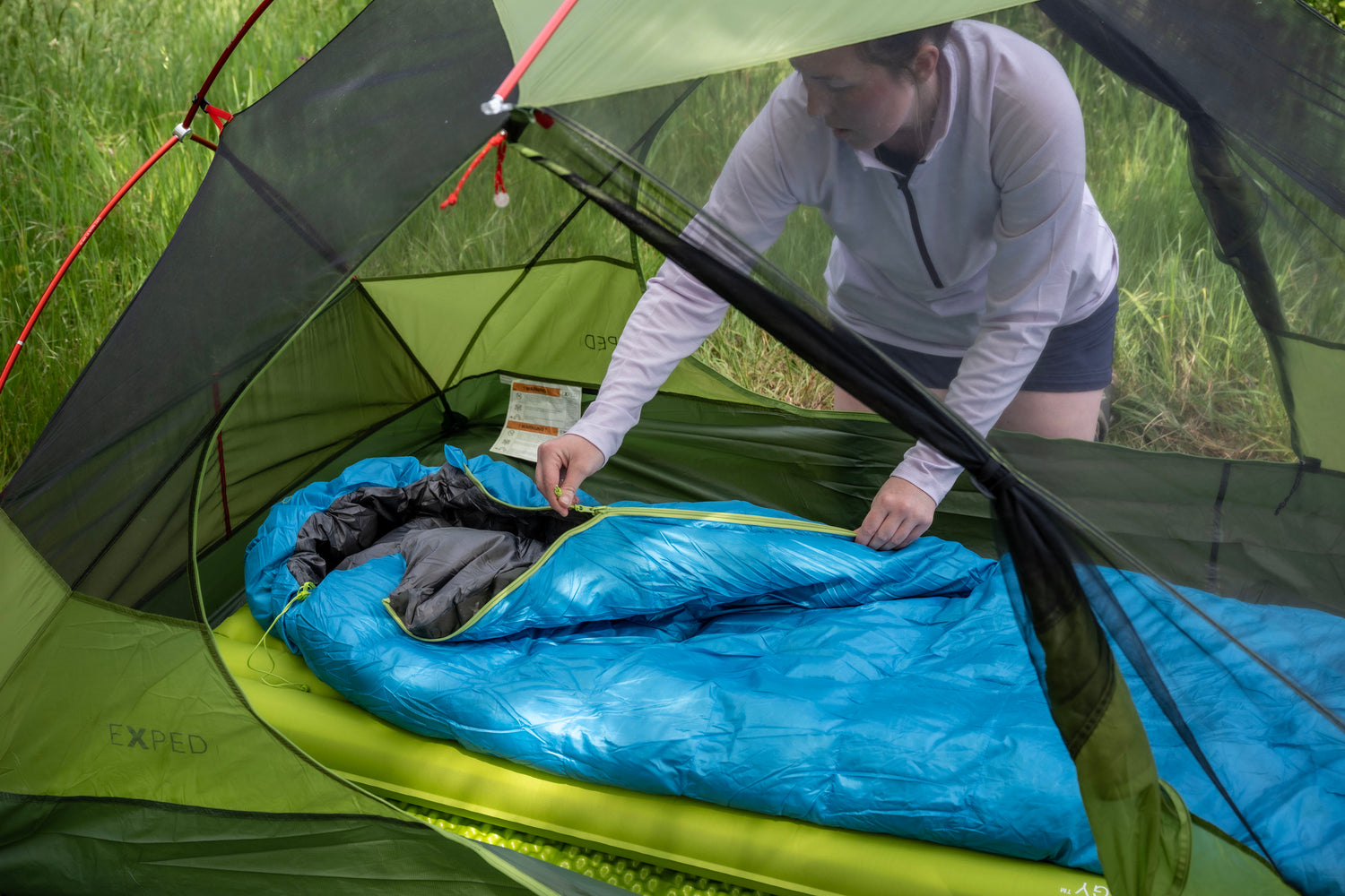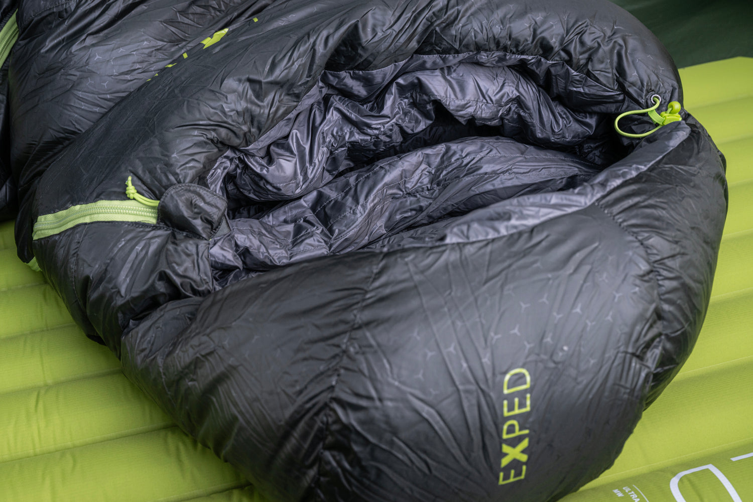 A puffy down-insulated draft collar and draft tube behind the zipper retains warmth within the sleeping bag.