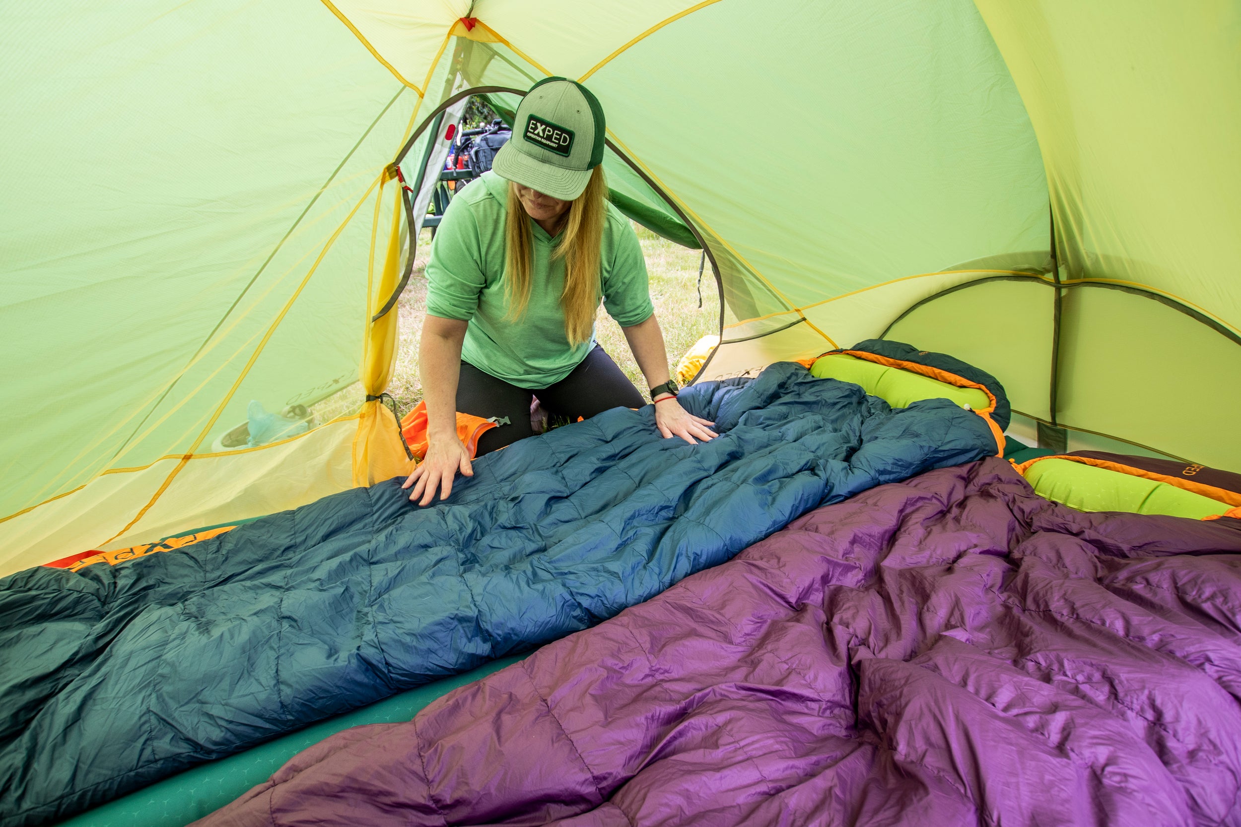 Both shell and liner fabrics are PFC-free and only RDS certified down is used for the filling. All Comfort sleeping bags can be paired with each other, with other EXPED models, as well as with most sleeping bags from other brands.