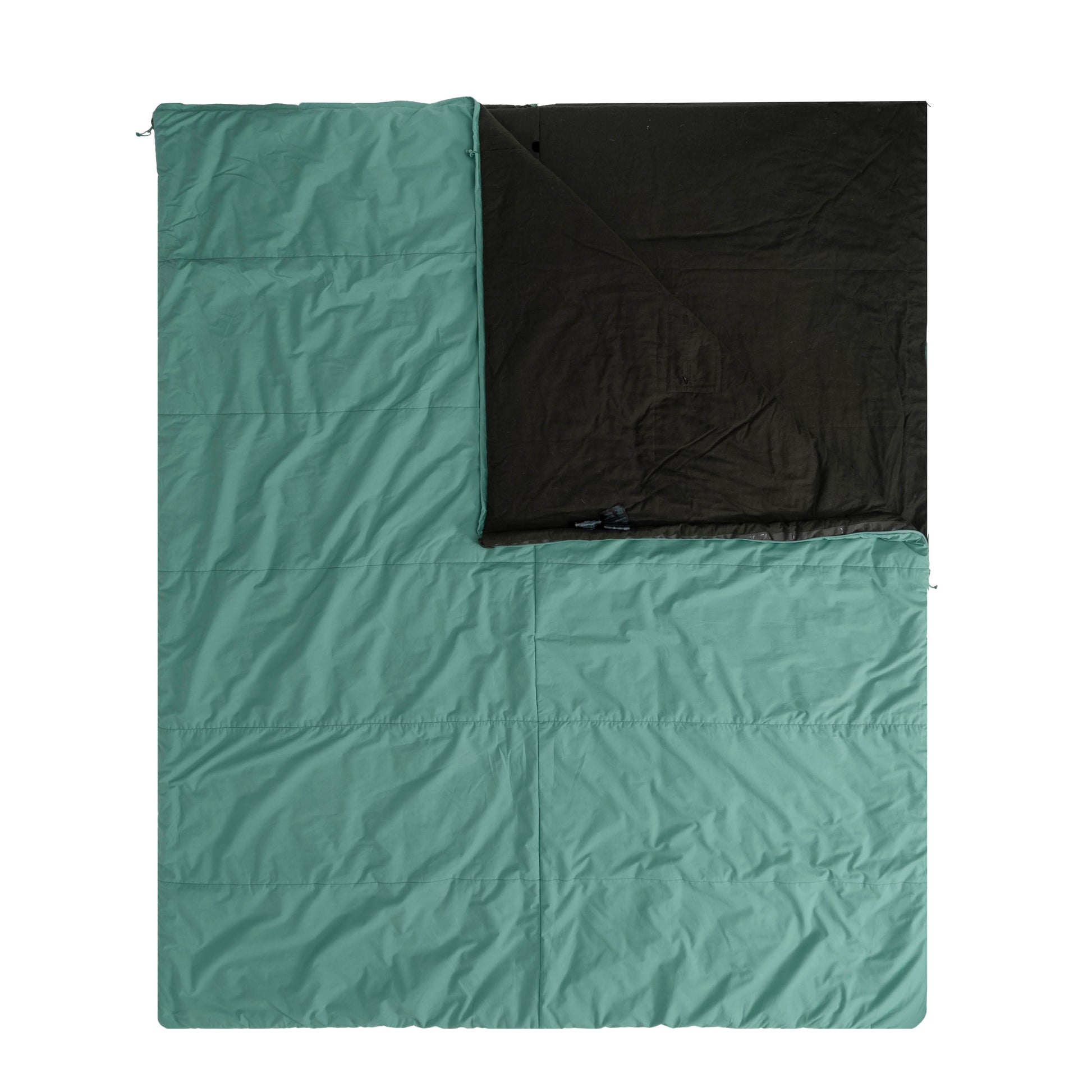 The DUO (double-wide) model serves as a double-wide sleeping bag accommodating 2 sleepers. It can be unzipped into 2 camp blankets or reconfigured into 2 single sleeping bags.