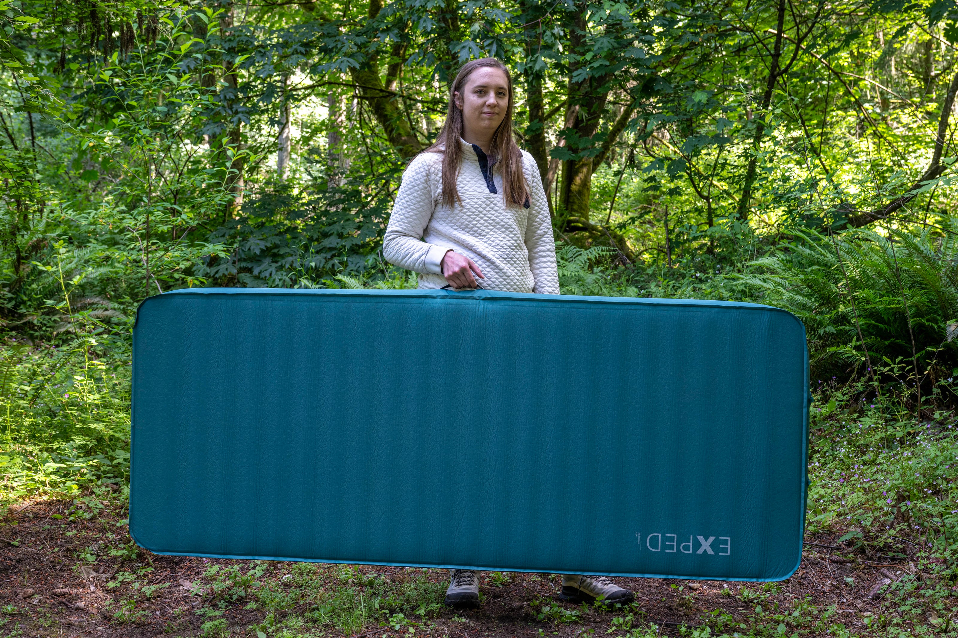 It may sound counterintuitive, but if you find that your camping mat is just a little too hard, use the inflate valve to purge excess air. By opening the valve and pressing gently on the one-way flapper, you can release controlled bursts of air to reach the exact firmness you want. If you open the extra-large deflate valve, you may find yourself losing more air than you anticipated and need to top off your mat again.