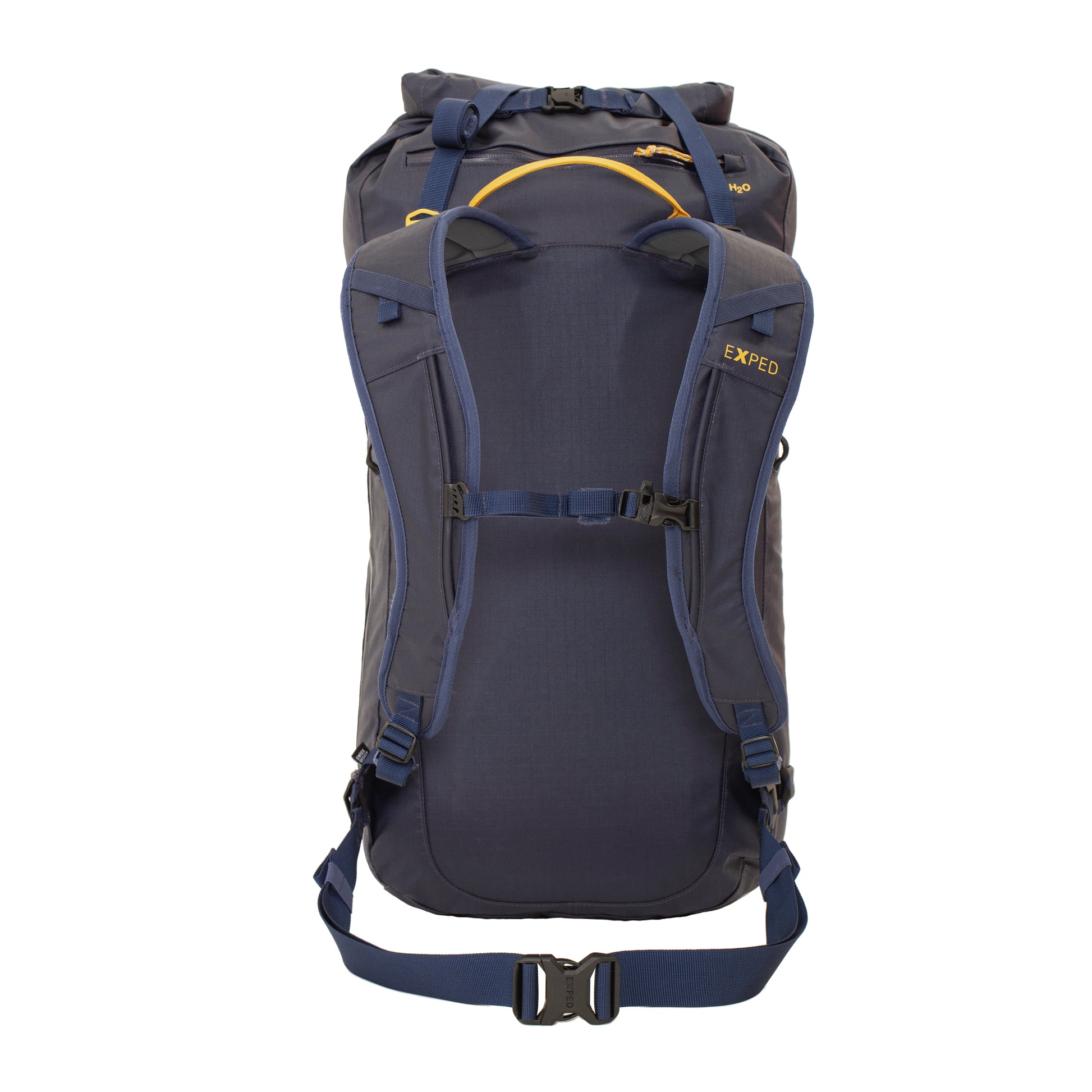 Hydration tube port near top of pack for compatibility with most water bladders.